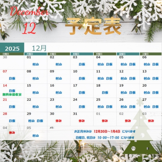 少し早いですが、年末にかけて予定が増えてくる時期かと思いますので